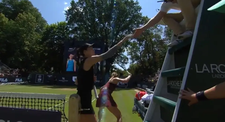 值得注意的是,巴多萨在选择退赛完成握手的例行环节后,转身疯狂砸拍泄愤,让王欣瑜都吓了一跳。显然,这位脾气火爆的西班牙美女,本场被王欣瑜彻底打破防。巴多萨也因此举,遭到现场观众的狂嘘。
